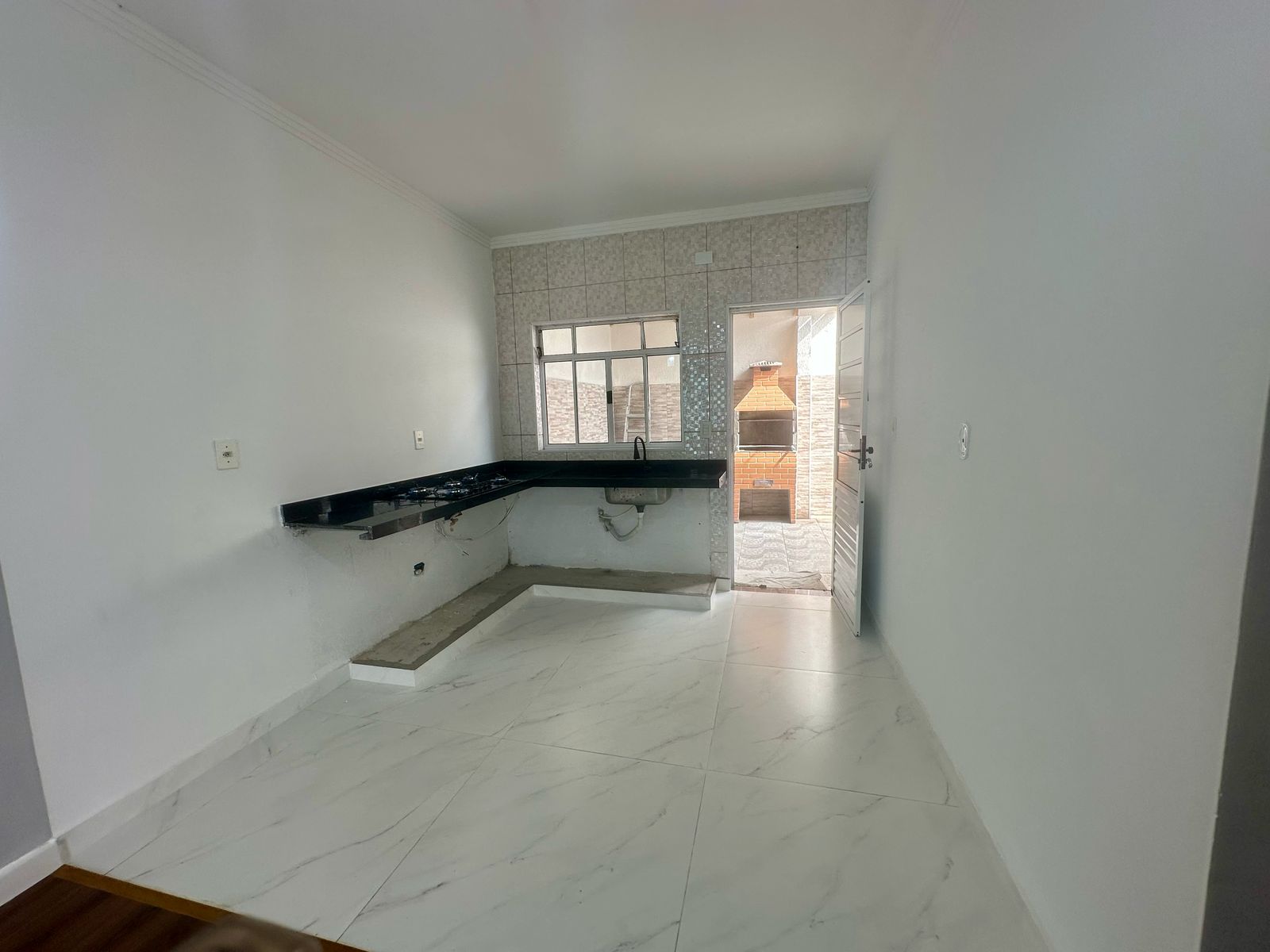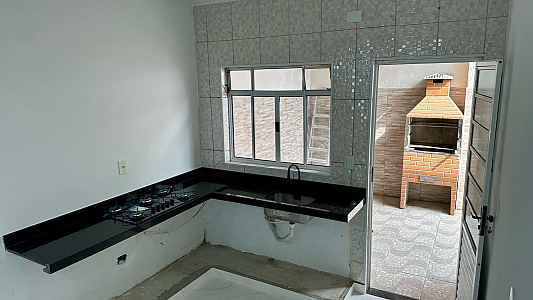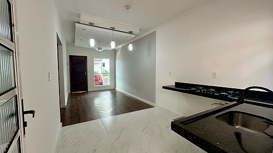 Casa térrea com sala, cozinha, 2 quartos, 1wc, lavanderia e fundos com churrasqueira, garagem para 2 carros (sendo 1 vaga coberta e 1 descoberta) Condomínio com portaria, salão de festas e parquinhos, próximo à centro comercial, mercado, farmácia etc