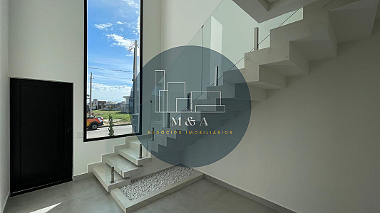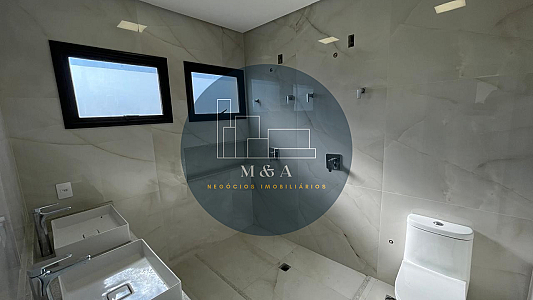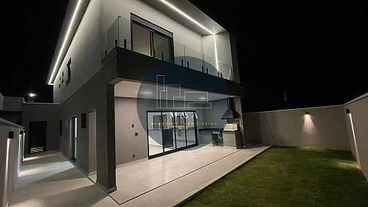 Integração total entre sala de estar, sala de jantar, cozinha e área gourmet. Portas dos quartos com persiana elétrica embutida. Concepção do projeto focado em abundante ventilação e iluminação nas salas e quartos. Pé-direito com mais de 6 m na sala de estar e 3 m nos demais ambientes. Pisos de porcelanato nas áreas comuns e nos quartos. Portas Pormade. Cozinha em península, em granito São Gabriel. Aquecimento solar nos banheiros, cozinha e área gourmet. Tubulação para ar-condicionado já instalada em todos os quartos e áreas integradas. Área gourmet com churrasqueira e ponto pra freezer. Lavabo externo. Garagem para 4 carros, coberta para 2 carros