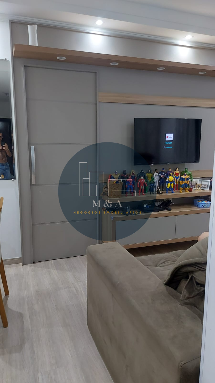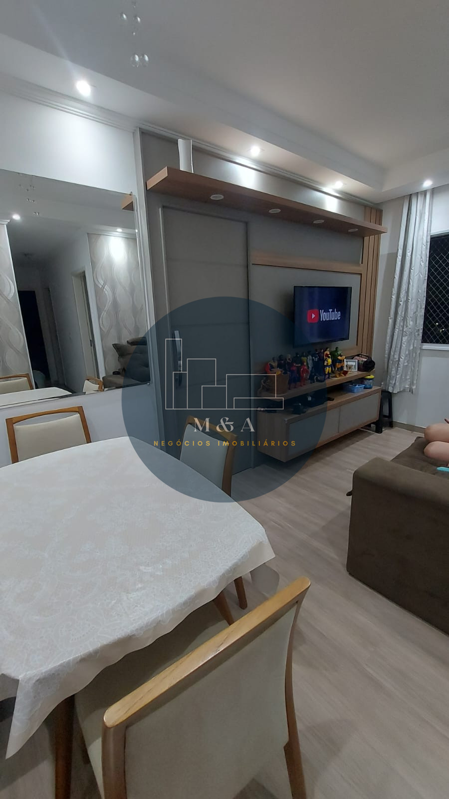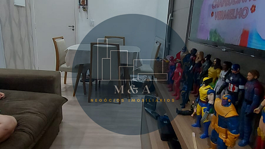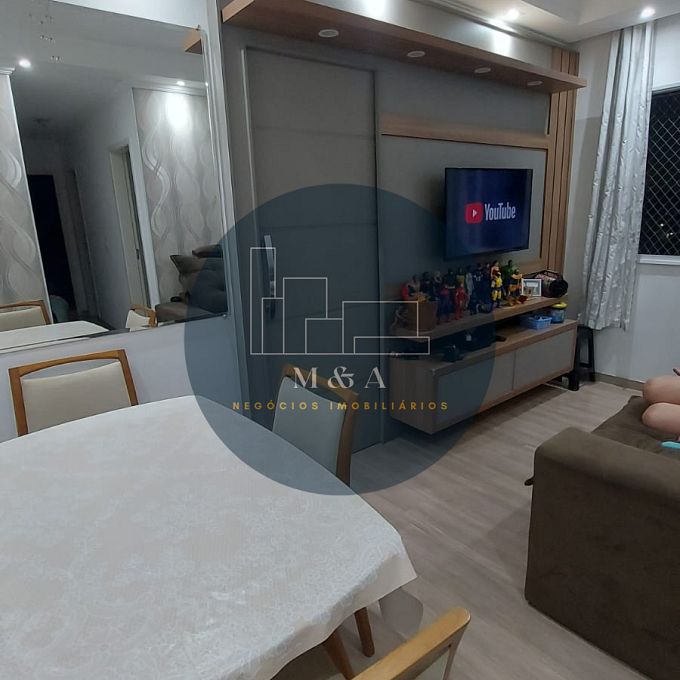 São 47 m2 sendo dois quartos , com móveis planejados e piso vinílico Sala e cozinha com planejados e piso porcelanato Banheiro com planejados, mármore e box. Laser Playground Quadra poliesportiva Salão de festas Churrasqueira Piscina