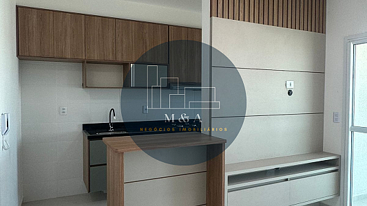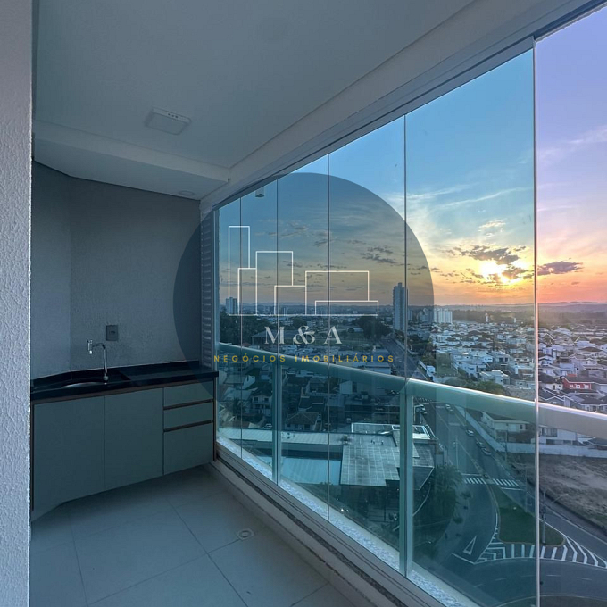 Apto novo, 2 dormitórios sendo um suíte todos com planejados, sala para dois ambientes com ar condicionado 18.000BTUs, cozinha planejada, cooktop com forno, wc social, varanda com fechamento de cortina de vidro, aquecedor, 2 vagas de garagem.